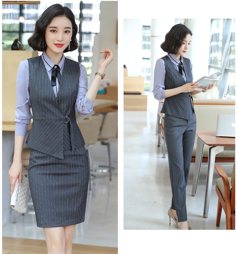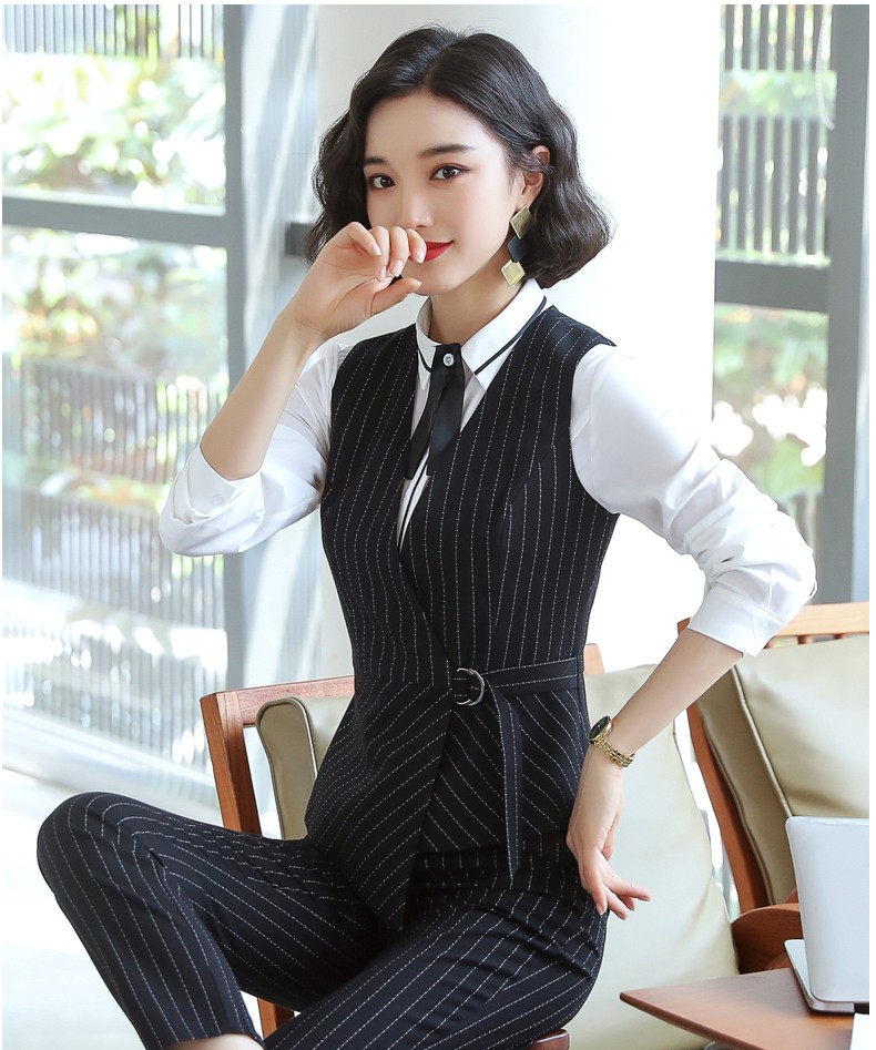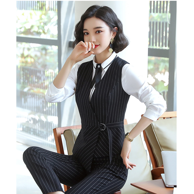 YDNMJ201215女款馬甲職業(yè)裝女套裝氣質(zhì)西服馬甲女款工裝三件套2020新款工作服面試正裝定制