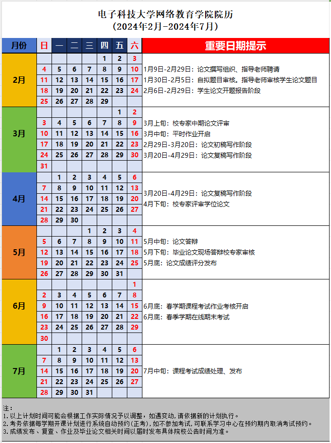 11.24春學(xué)期電子科技大學(xué)網(wǎng)絡(luò)教育學(xué)院學(xué)期院歷(2024年2月-2024年7月.xlsx